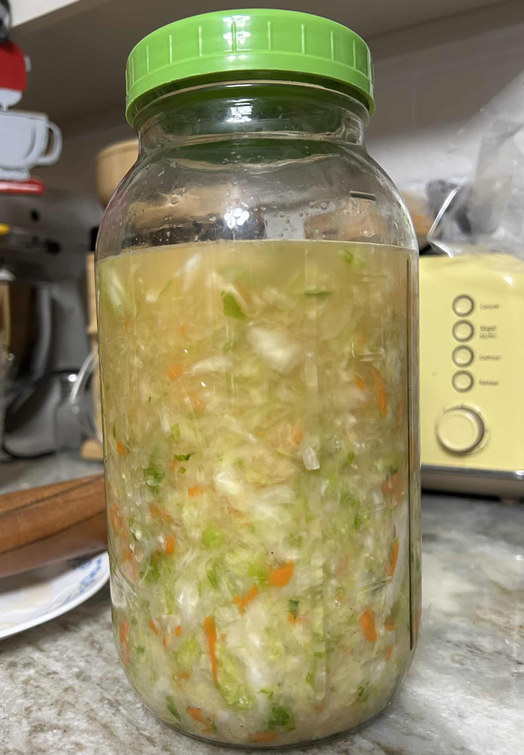 I also like eating a few bites of some type of fermented food during the day to increase good gut bacteria through food. I think this is even more powerful than a probiotic pill. Right now my favorite way is through homemade sauerkraut, but I also like kefir and kombucha (these gummies are fun.) Learn how to make milk kefir here.