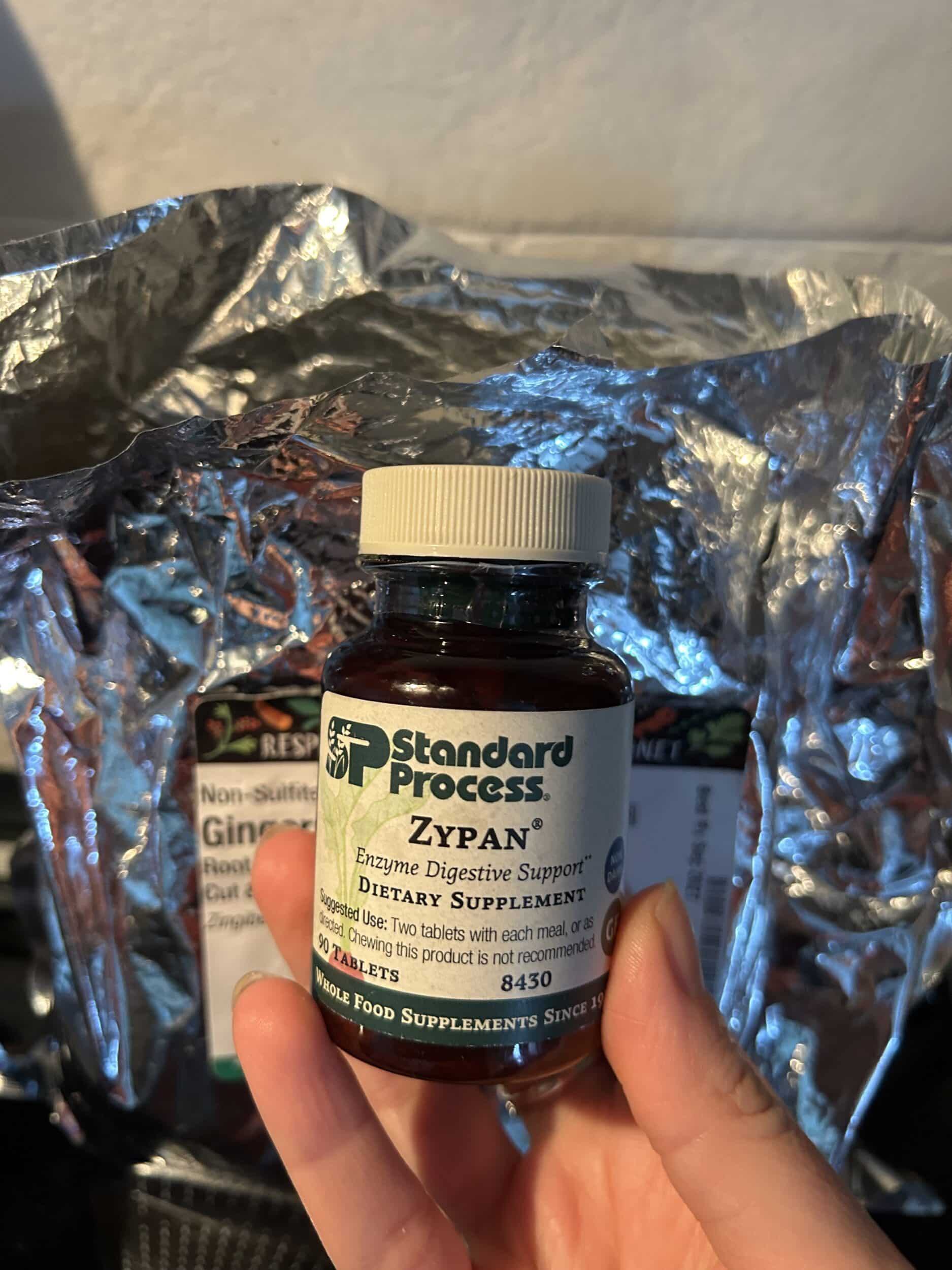 The only one I can really recommend is Zypan from Standard Process, because it’s the most gentle I know of and the only one our family has used frequently. It contains betaine hydrochloride, pancreatin, and pepsin to aid stomach acid. I also love it because their ingredients are naturally sourced which makes the enzymes really effective.