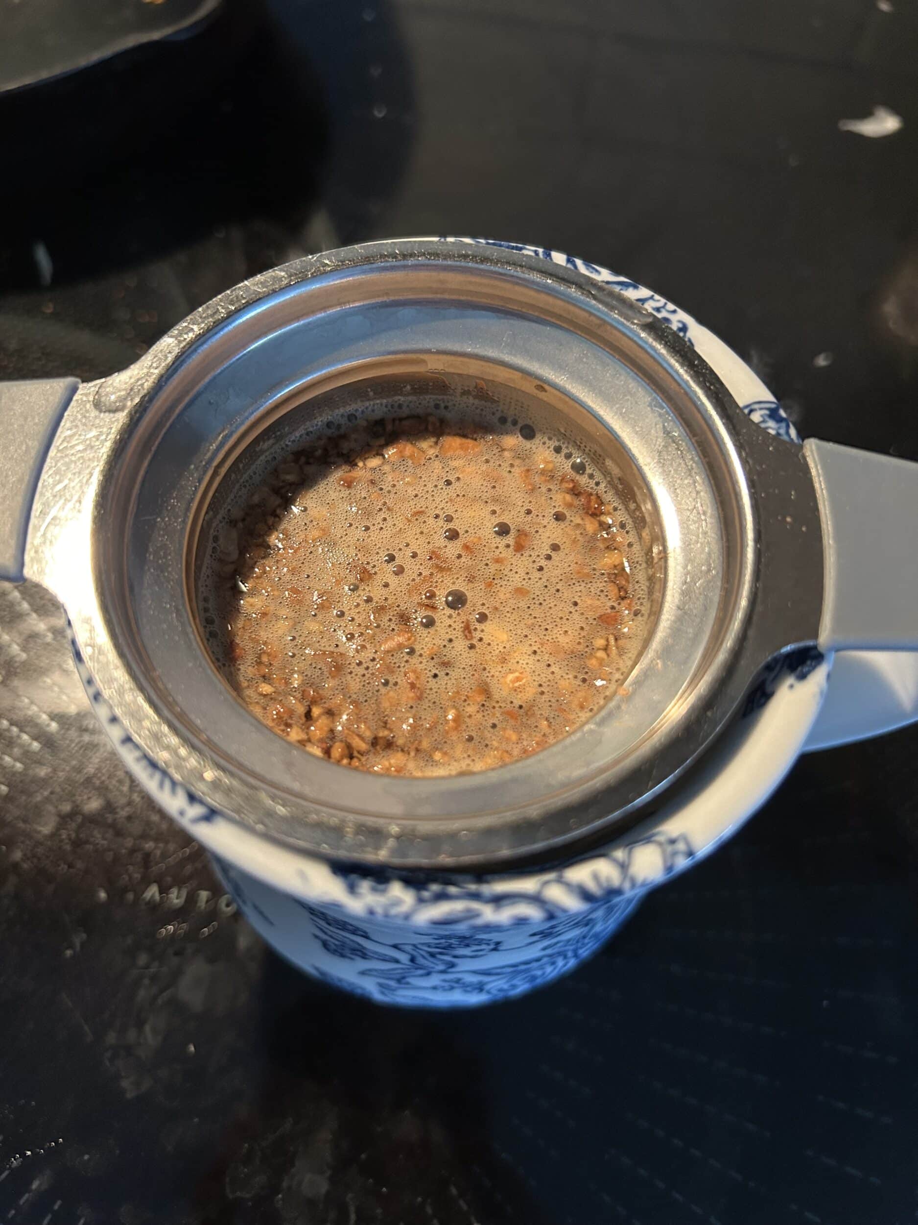One way I support this is with a cup of strong ginger tea before dinner. And no, I’m not talking about a piddly little ginger tea bag. I need a strong cup. So, I like buying a good quality loose leaf ginger tea (like this) and adding a couple tablespoons to a tea infuser with hot water. I let it steep for 4-5 minutes so it’s nice and strong, and sip it while I make dinner.